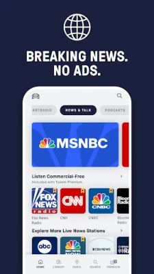 • News with Fewer Ad Breaks: Keep up with coverage from CNBC, CNN, FOX News Radio, MSNBC and more without as much advertising.