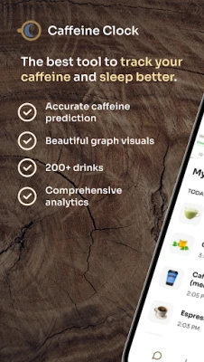 Caffeine Clock is a caffeine tracker that provides accurate tracking, translating into better decision making for your life. Log what you drink or eat, see how caffeine is absorbed and cleared over time, and plan your last cup so you can sleep soundly.