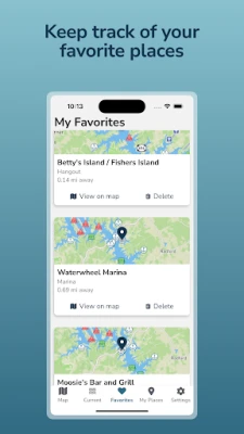 Favorites - Save your favorite marinas, boat launches, restaurants, and other points of interest for easy access later. With favorites you can quickly orient to your preferred spots without searching every time.