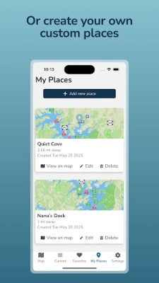 Places - Create and customize your own places on the map. Whether it’s a quiet cove for relaxation, a prime wake surfing area, or a popular hangout spot, places allows you to mark and personalize locations important to you.