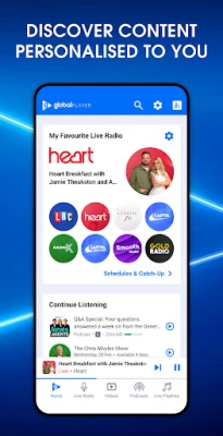 Global Player features a personalised homepage where you can set your favourite UK radio stations and catch up on anything you’ve missed on live radio. You can receive personalised recommendations for podcasts, playlists and stay up to date with the latest news. Global Player is designed to provide you with more than just radio; it has podcasts, videos, and playlists all available in one place.