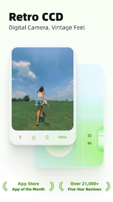 The CCD digital camera-inspired color palette, classic film filters, and original signature filters, combined with meticulously designed special effects and interface, creates a unique shooting experience.