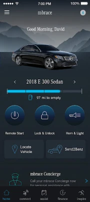 Designed for owners with model year 2017 and 2018 vehicles. The mbrace app lets you manage your vehicle on-the-go with features that allow you to: