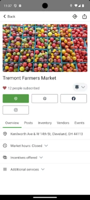 Produce Path for Customers Produce Path for Customers is a customer-facing extension of Produce Path for Managers that allows market managers to share up-to-date information about their market directly with their customers! Customers using this interface can search for markets near them, subscribe to markets to receive updates directly from managers, review product availability, get market logistics (like location and hours), make a grocery list, find recipes, and more! It is currently only available at select markets in Ohio and will be coming soon to more markets and other states!