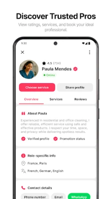 • Browse by category and view real-time rates, ratings and reviews • Chat securely in-app to discuss scope, schedule and pricing • Confirm appointments instantly and get push notifications for every update • Save your favorite pros, track job status and leave feedback