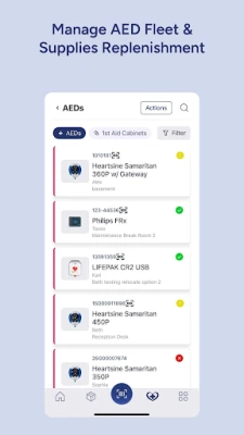 Ensure your Automated External Defibrillators (AEDs), First Aid Cabinets, and Bleeding Control Kits are response ready when an emergency strikes. Use your smartphone to record readiness inspections on the go, and review issues such as upcoming supply expirations and maintenance needs. Log in credentials are tied to your access level, giving you only the information you are responsible for.
