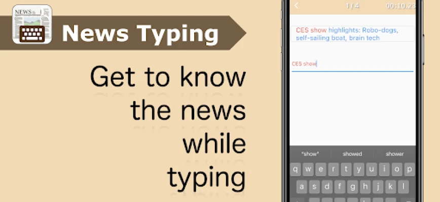 "Typing Practice: Learn with English News" is a free app that helps you improve typing speed, reading, and listening skills using real-time English news articles.